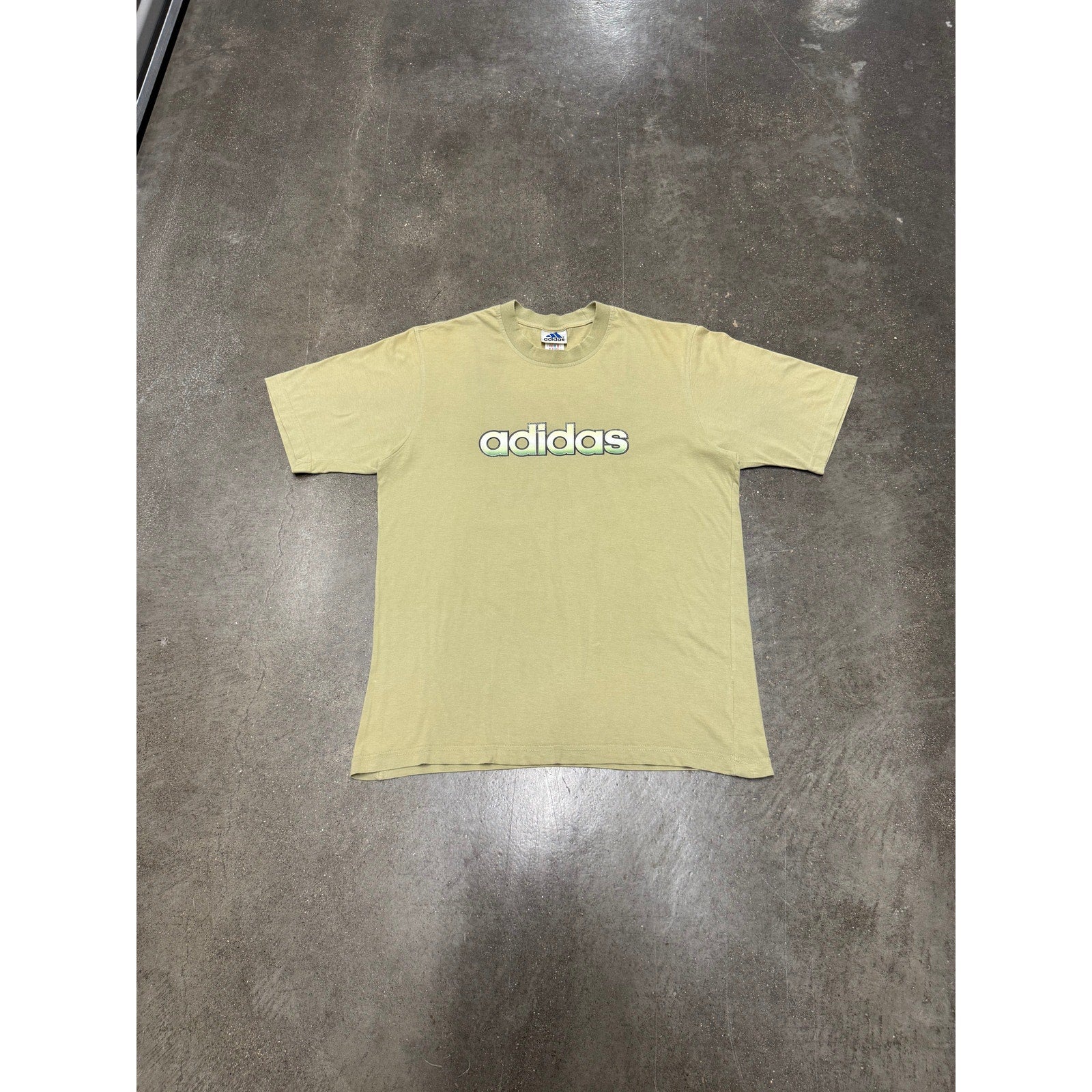Vintage 1990s Adidas Olive Green T-shirt - Soccer Sport - Sourced in Paris, France