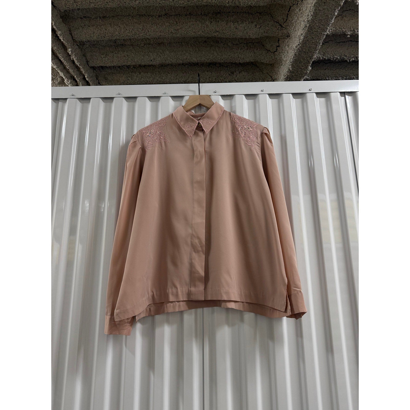 Vintage 1990s Embroidered Pearl Cuffs Silk Button Up - Pearl Cuffs - Sourced in Lisbon, Portugal