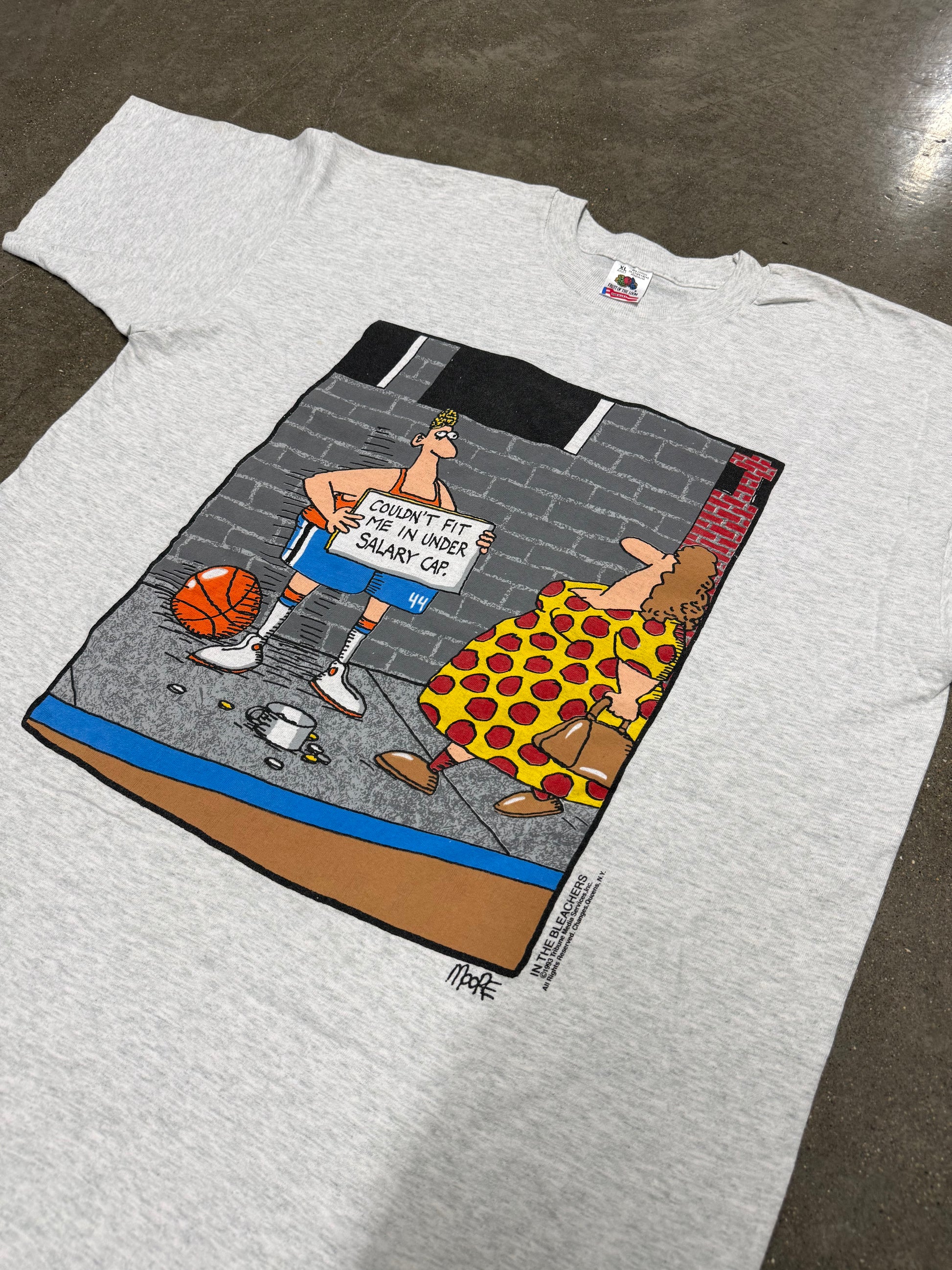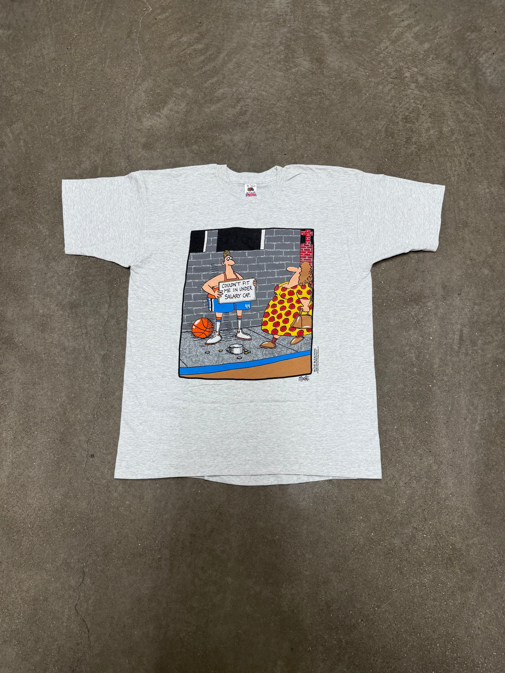Authentic vintage 1990s In The Bleachers basketball comic T-shirt featuring classic sports cartoon artwork. A must-have for basketball fans, comic art lovers, and vintage tee collectors. Original 90s graphic shirt with retro humor and nostalgic sports style.