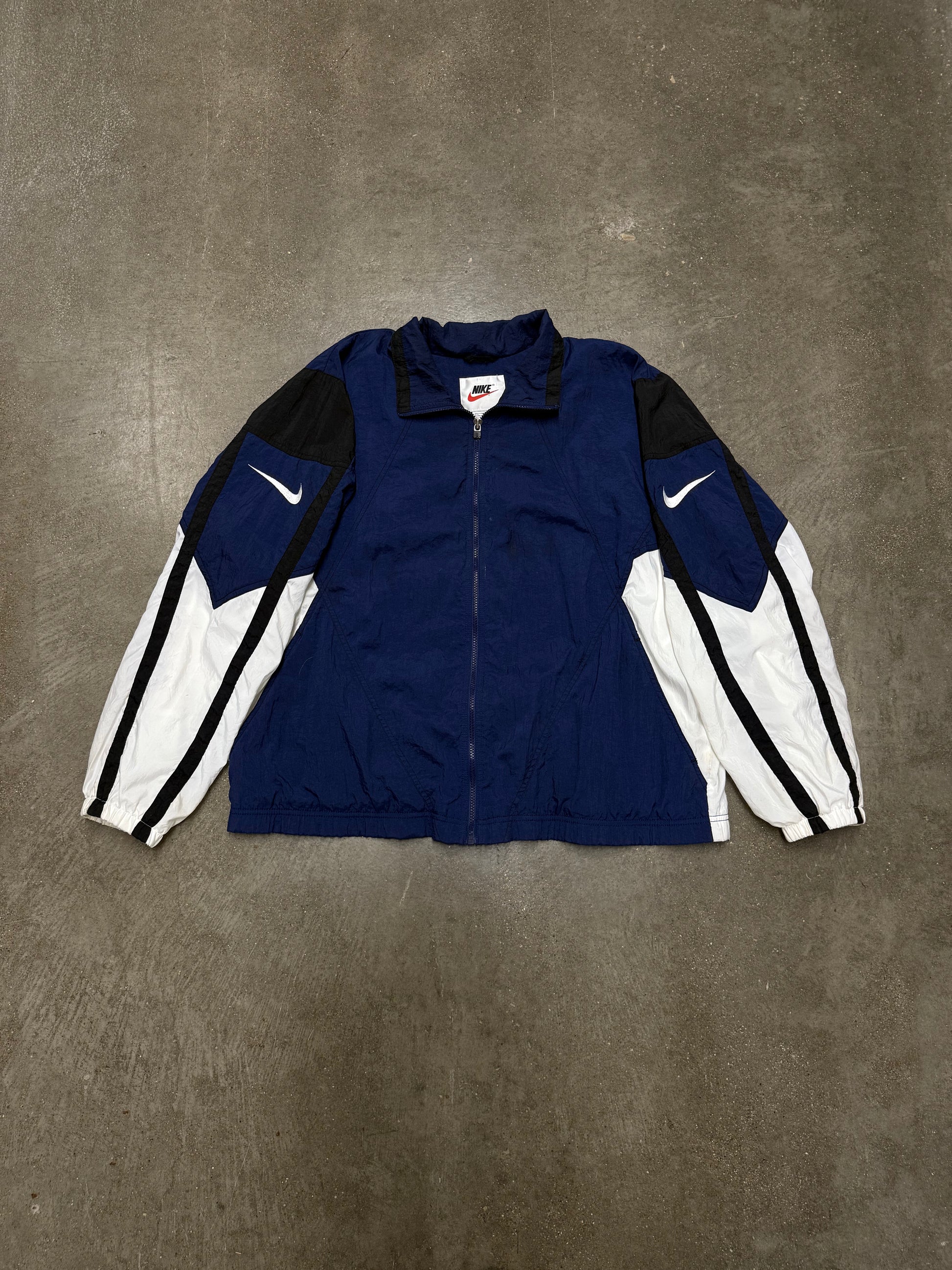 Classic vintage 1990’s Nike windbreaker jacket with iconic branding and lightweight, wind-resistant fabric. Perfect for sporty retro style and everyday casual wear.