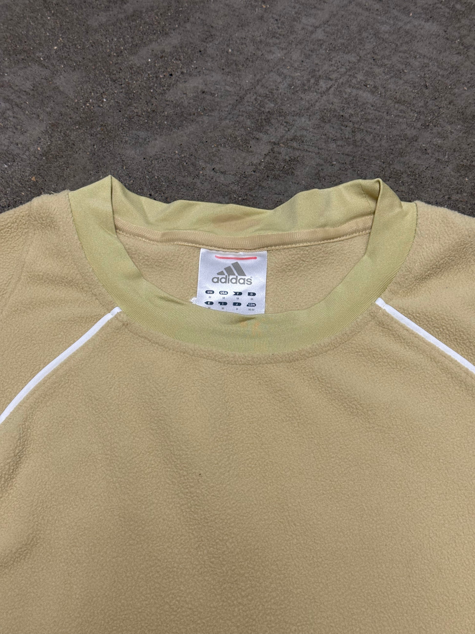 Vintage 90s/Y2K Adidas Soccer Fleece Sweater featuring iconic Adidas branding and a cozy athletic fit. A classic vintage sportswear piece blending late-90s soccer style with early-2000s streetwear vibes—perfect for casual wear or layering.
