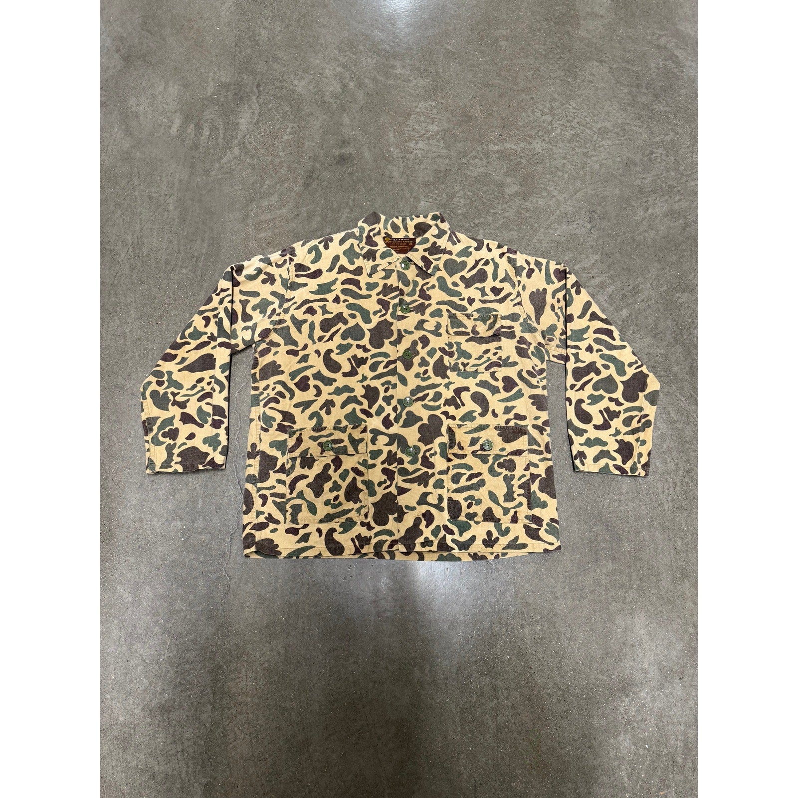 Vintage Caliber Sportsman’s Apparel Duck Camouflage Button-Up Shirt – A classic outdoor shirt featuring bold duck camo, durable fabric, and timeless sportsman style. Perfect for hunting, layering, or everyday wear for those who love vintage camo and rugged apparel.