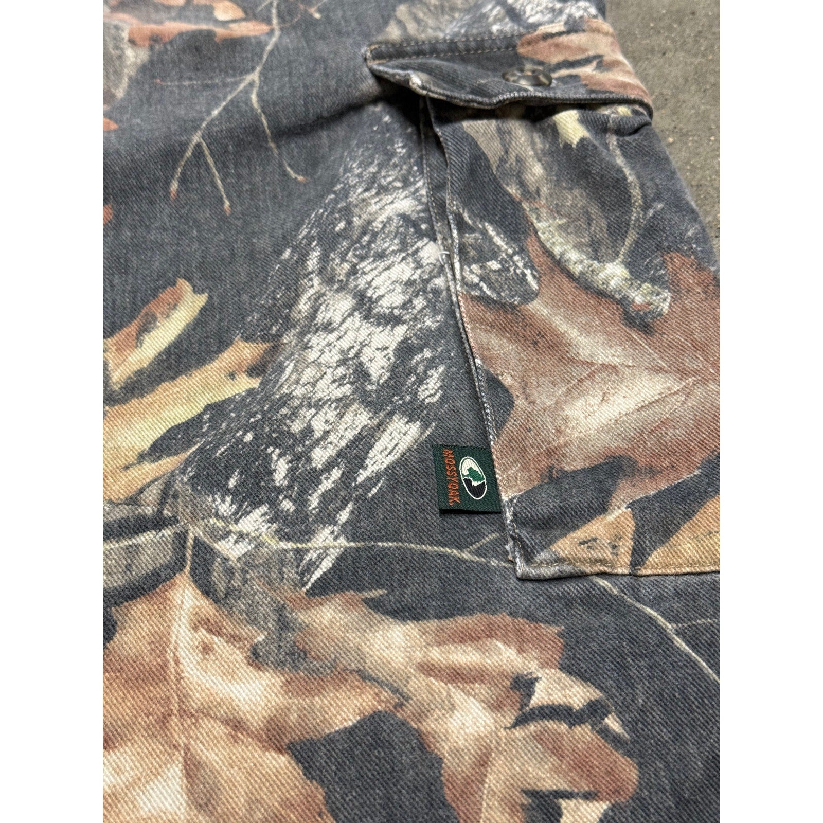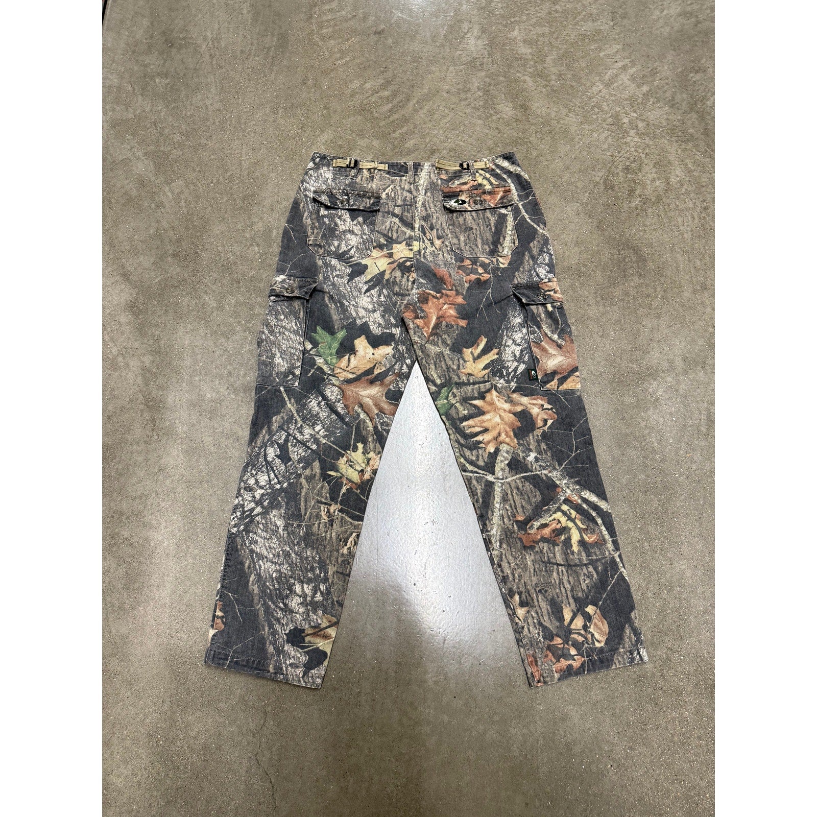 Vintage Y2K Mossy Oak Camo Cargo Pants – Retro early-2000s outdoor style with iconic Mossy Oak camouflage, durable cotton construction, and roomy cargo pockets. Perfect for hunting, streetwear, or anyone seeking authentic Y2K camo utility pants.