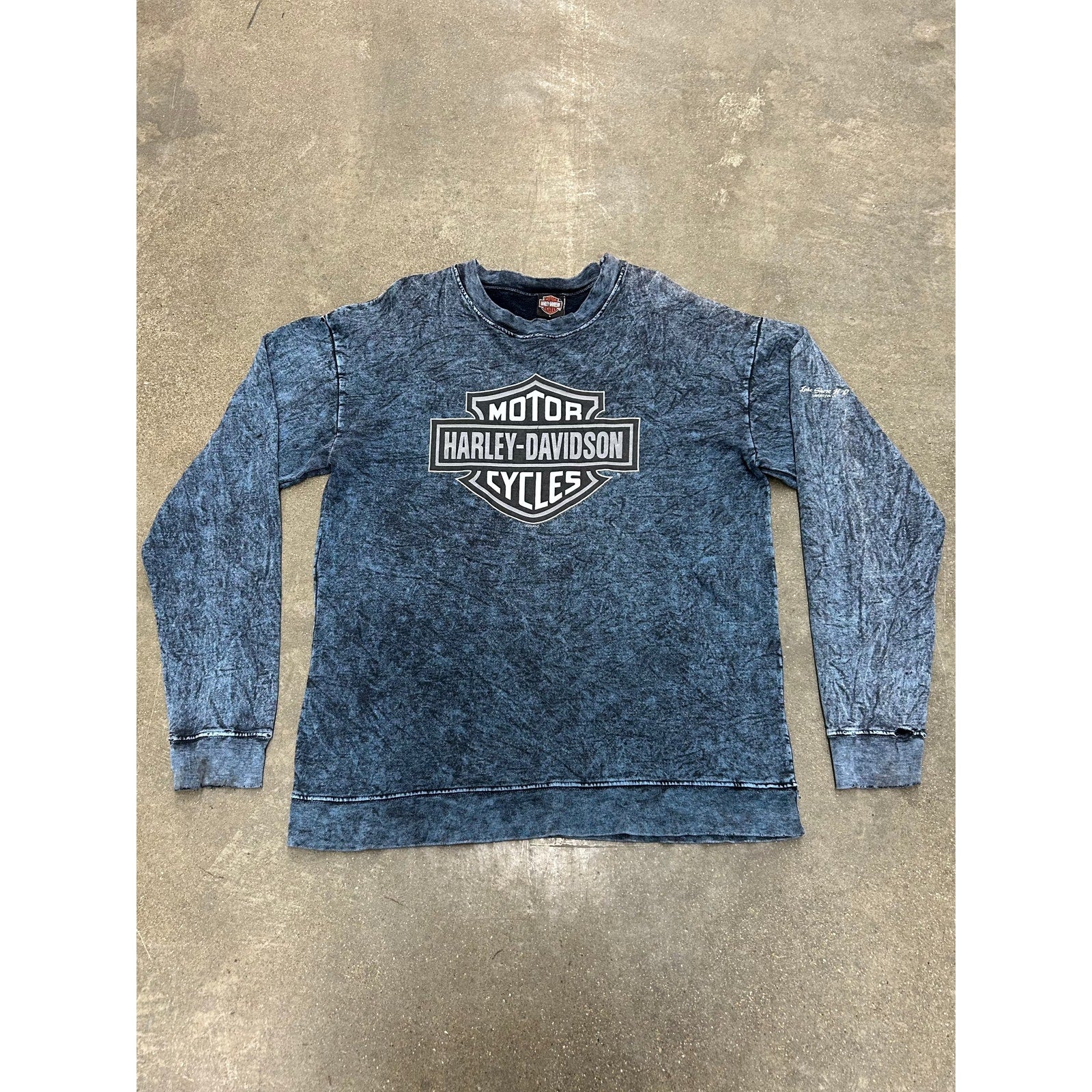 Y2K Harley Davidson Crewneck – Vintage Motorcycle Apparel | Classic Biker Sweatshirt Color: Washed Black Tagged Size: L Shoulder to Waist: 23in Pit to Pit: 32in